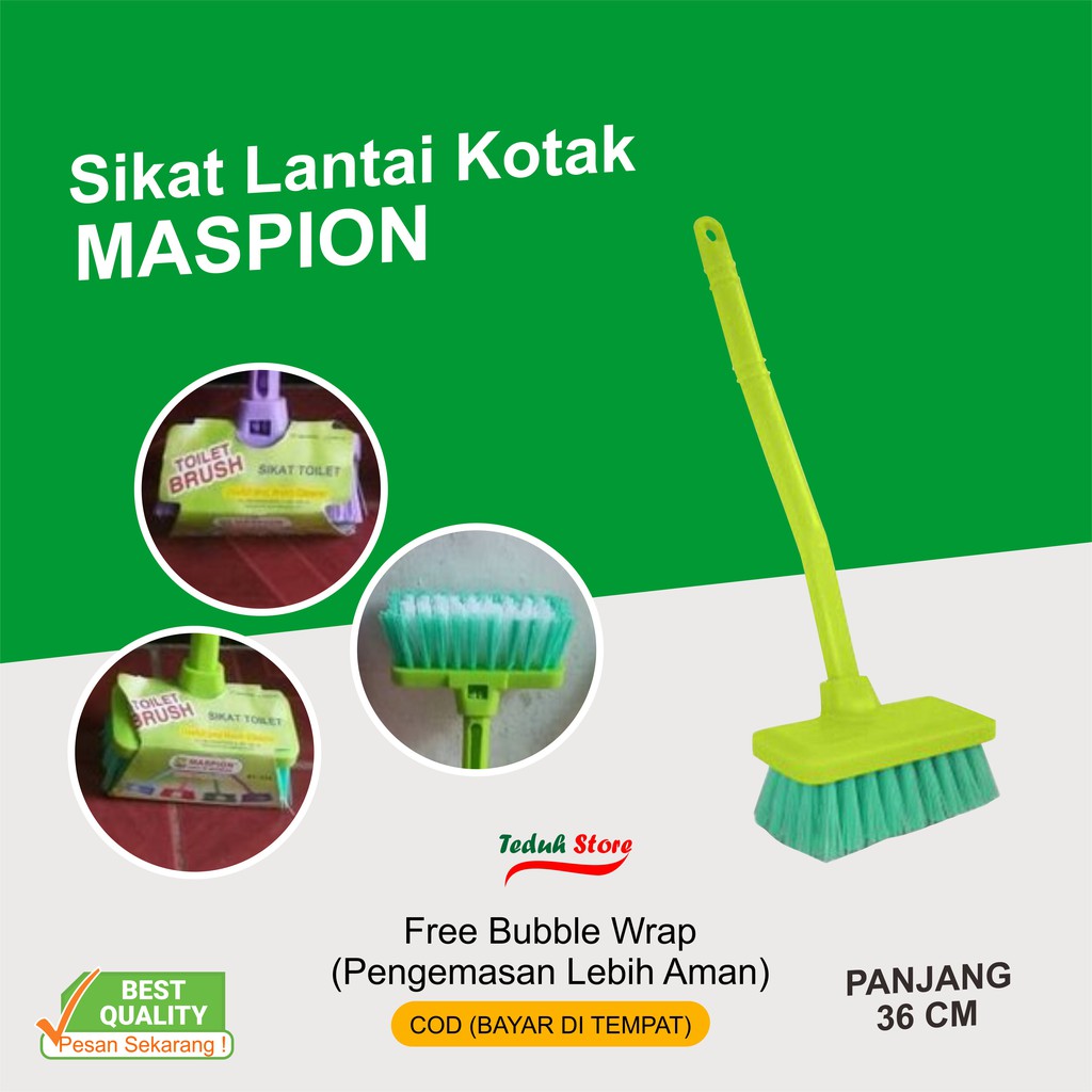 SIKAT WC KOTAK - TOILET BRUSH MASPIONBahan plastikBerbentuk kotak persegi dengan gagang panjang 36 cm, sangat memudahkan untuk menyikat lantai kamar mandi maupun lantai toilet anda.Silahkan bisa langsung di orderSalam HangatSelamat Berbe