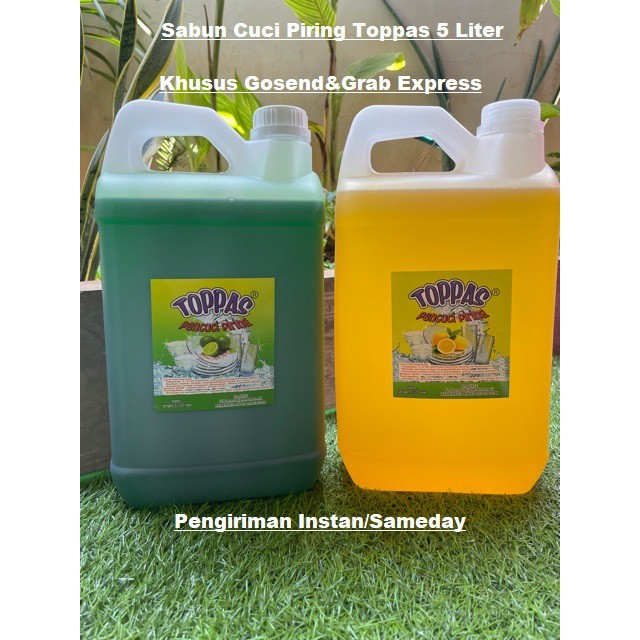 KHUSUS INSTAN/SAMEDAYPengiriman Menggunakan GOSEND/GRAB EXPRESSKetentuan Pengiriman :1. Instan : Diproses pada jam 06.00 - 17.00 (order di atas jam 17.00 akan di proses keesokan harinya) Maksimal Jangkauan 40km Maksimal Order 4 jerigen 2. Sameday : Diproses pada jam 09.00 - 16.00 (order di atas jam 16.00 akan di proses keesokan harinya) Maksimal Jangkauan 40km Maksimal Order 1 jerigen Kami berlokasi di Sukmajaya, Depok.Untuk pemesanan dalam jumlah besar, bisa menghubungi no hp yang tertera di Deskripsi TokoJika lokasi Anda di luar jangkauan instan/sameday bisa menggunakan pengiriman via kargo/JTR.Mohon dapat di cek etalase kami lainnya.Sabun Cuci Piring Toppas 5 Liter dengan No. Kemenkes RI PKD 20301911029Pencuci piring:1. Ampuh membersihkan kotoran, lemak dan bau2.Tidak menyebabkan iritasi kulit3. Harga sangat ekonomis4. Kental Dan hemat dalam pemakaian5. Hasilnya kesat Dan mudah dibilasHijau: aroma lime (jeruk nipis)Kuning: aroma