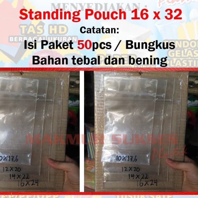 Deskripsi Standing Pouch 16 x 32 (50 lembar)Standing pouch transparan kualitas premium bahan tebal sehingga sulit sobek dan memastikan makanan yang ada tersimpan dengan baik, cocok digunakan untuk mengirim makanan atau snack.Bahan bening dengan kualitas baikPinggiran LAMINASI (LAS) TEBAL, sehingga aman untuk menyimpan berbagai makananTerdapat Klip / zip di bagian atas.Bagian bawah kokoh & kuat untuk berdiri (standing).Terdapat juga berbagai ukuran lain sesuai dengan gambar. Terima kasih sudah mampir jangan sungkan untuk tanya-tanya. Bila ada barang yang belum ada di etalase bisa langsung saja PM atau WA nomer yang ada karena varians barang masih banyak. Tetap semangat tetap berbelanja di EasyPlasticUkuran Lain:10 x 17,613 x 2014 x 2216 x 2416