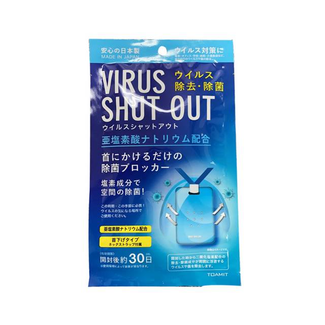 Dapat digantung, ditaro dimeja dllCegah virus & bakteri di sekitar tubuh dengan Virus Shut OutVirus Shut Out adalah pencegah virus dan bakteri. Berbentuk neck strap yang mudah digunakanKandungan utama: chlorine dioxide generator (sodium chlorite, natural zeolite)Made in Japan . Masa penggunaan: 30 hari setelah dibuka .Fungsi nya membunuh virus2 di udara / sekitar kita.Virus Shut Out digunakan sbg pencegahan bukan hanya utk virus corona tp bisa juga utk pencegahan dr virus2 flu, batuk & virus2 lainnya.. Bisa dipakai oleh berbagai usia . Cara kerjanya :ketika bungkus dibuka, virus shut out akan melepaskan partikel kandung2an yg ada didalamnya dan akan pecahMencegah virus disekitarnya. . Cara Pakainya :Bisa digantungkan/diletakkan diruangan.Bisa digantungkan dileherKetika anda bepergian ketempat ramai spt pasar, mall, stasiun, atau tempat umum lainnya. .*Note :*Tdk boleh langsung menempel dg kulitTidak boleh dipakai secara terus menerus apabila digunakan diruang terbuka berangin saat matahari panas, partikelnya akan beterbangan dan akan mengurangi masa efektifnya (kurang dr 30 hari)#virusshutout #povirusshutout #pencegah