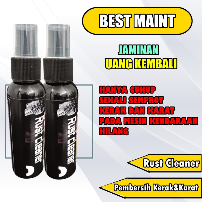 BEST MAINT RUST CLEANER cairan ampuh penghilang kerak dan karatGARANSI 100%WARNINGnb: untuk pengiriman ke luar pulau Jawa di mohon pake kurir JNE.J&T tidak bisa untuk pengiriman luar pulau Jawa#KEGUNAAN-Bestmaint Rust cleaner Dapat membersihkan karat pada besi,crome,alumunium-Bestmaint Rust cleaner Dapat memebersihkan kerak membandel pada mesin kendaraan-Bestmaint Rust cleaner membersihkan sisa sisa oli membandel pada motor/mobilWARNINGJANGAN SAMPAI KENA BAHAN PLASTIK/ CAT MOTOR/MOBIL#CARA PAKAI Bestmaint Rust cleaner-Semprotkan cairan pada mesin yang berkerak-Gunakan kuas,sikat,atau yang lain untuk meratakan cairan ke mesin.Tunggu 5/10 menit biar cairan bereaksi,lalu bilas bersih dengan air-Untuk karat gunakan sikat alumunium atau sikat kawat yang halus aga cairan lebih reaktif-Gunakan dalam kondisi mesiin dingin ( tidak panas)-Hindari pengunaan di bawah terik matahari-Jika terkena kulit atau bagian tubuh yang lain segera cuci dengan sabun dan air yang bersihBestmaint Rust cleaner solusi buat kerak karat membandel dalam satu paketISI 100 mlberat:100 grSelamat berbelanja terimakasih.pembeli puas kami pun