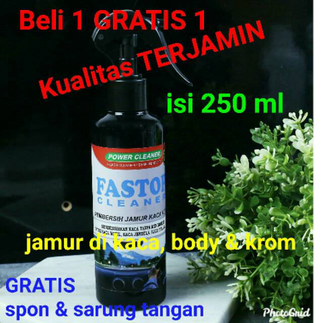 Isi 250mlFastop pembersih jamur kaca (Glass Polish) adalah cairan yg di formulasikan khusus untuk membersihkan JAMUR/KERAK membandel yang menempel pada KACA dan BODY MOBIL, juga KACA JENDELA, KACA ETALASE, DLL, yang disebabkan oleh sisa pencucian, air hujan, maupun akibat kotoran yg menempel sangat lama dan terkena panas dan hujan. Cairan ajaib ini ampuh digunakan, setelah melalui ujicoba pada berbagai jenis kendaraan dan terbukti ampuh dan mudah dengan hasil yg amat memuaskan, serta aman digunakan, tidak merusak lapisan kaca, tidak menimbulkan bercak2, tidak membuat baret, dan tidak merusak cat bodi mobil, karet2 dll.Cara pemakaiannya mudah gan, dgn cara disemprotkan ke kaca kemudian gosok menggunakan spon (pad applicator (sudah termasuk dalam paket)) sampai jamurnya bersih, kemudian lap dengan kanebo basah dahulu kemudian keringkan dengan kanebo. Terakhir lap dengan kain halus kering / handuk kecil atau kain microfiber agar hasilnya lebih bening mengkilap. Cara pemakaiannya juga ada pada stiker ya gaess..Untuk pengiriman hanya via JNT WAHANA SiCepat dan TikiSegera order ya gan.. sis... stok kami selalu terbatas... t