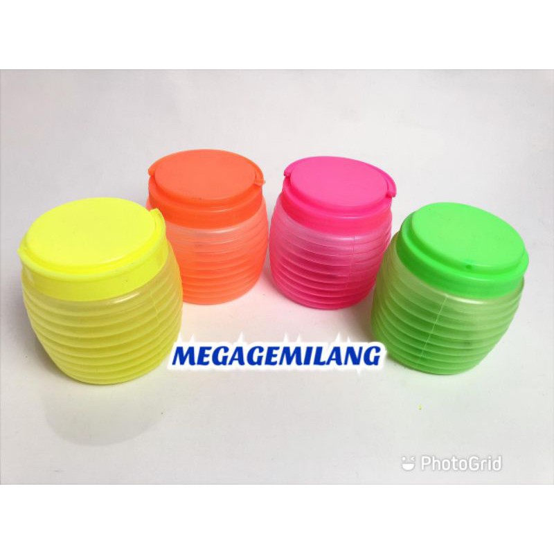Cocok untuk kue kering dan penyimpanan makanan lainya .Toples multifungsi mudah dibawa kemanapum.Ada 4 warna cantik .( Bisa request selama persediaan masih ada )Ukuran Diameter 9cmTinggi 10.5cm100% Real pictureDilarang mengambil foto tanpa seijin kami.Happy shopping l