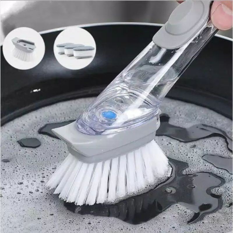 Fitur :- Sikat bisa dilepas - Cocok untuk wanita / pria yang tidak ingin tangannya basah / kotor saat mencuci piring atau sikat daerah cuci piring- Dilengkapi dengan dispenser sabun yang bisa digunakan untuk membersihkandengan penggunaan sabun yang hematDimensi : 26x 7cmDalam paket pembelian ini mendapat kan tongkat + sikat x